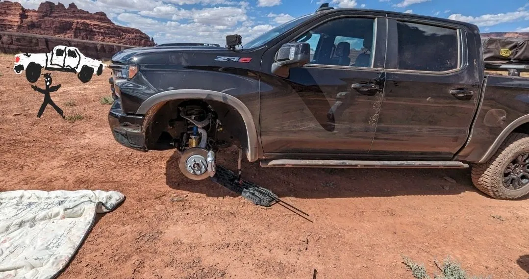 fricken cool.....real world photo.We had a flat tire w/ side wall cut on our very 1st off-road attempt with Chickens Corner and just before Hurrah Pass.