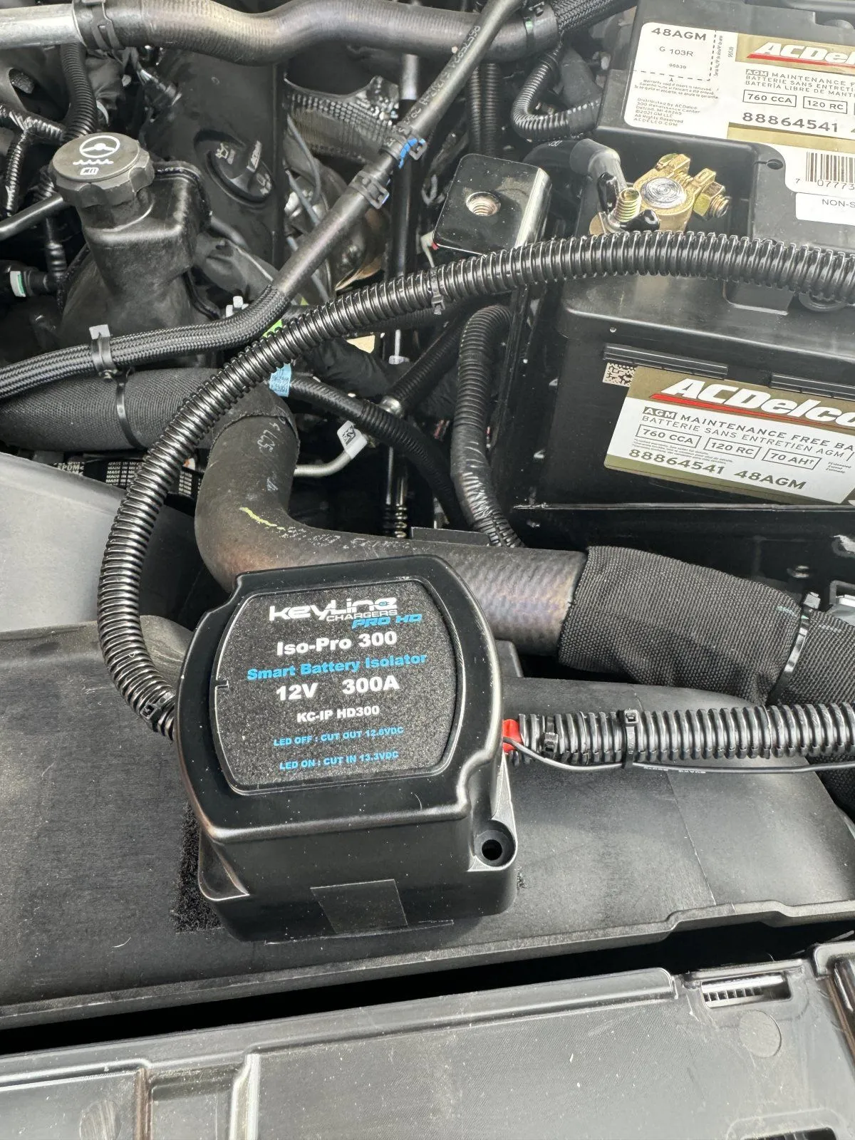 I added a second battery to my truck. When I looked at and removed the cover over the starter battery, I was a bit worried on how to attach the terminals. With the help of another owner in another forum, I found it wasn't as complicated as it looked and in fact it made for a very clean set up. I got an AC Delco AGM battery and a Keyline 300 amp Isolator from Amazon. Now I will attach all future accesories to the auxiliary battery.