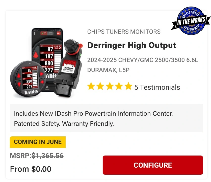Banks Derringer High Output tuner adds massive torque to your 2024-26 Duramax 6.6L. Makes towing heavy easier than ever! Warranty friendly. 50-state compliant.bankspower.com