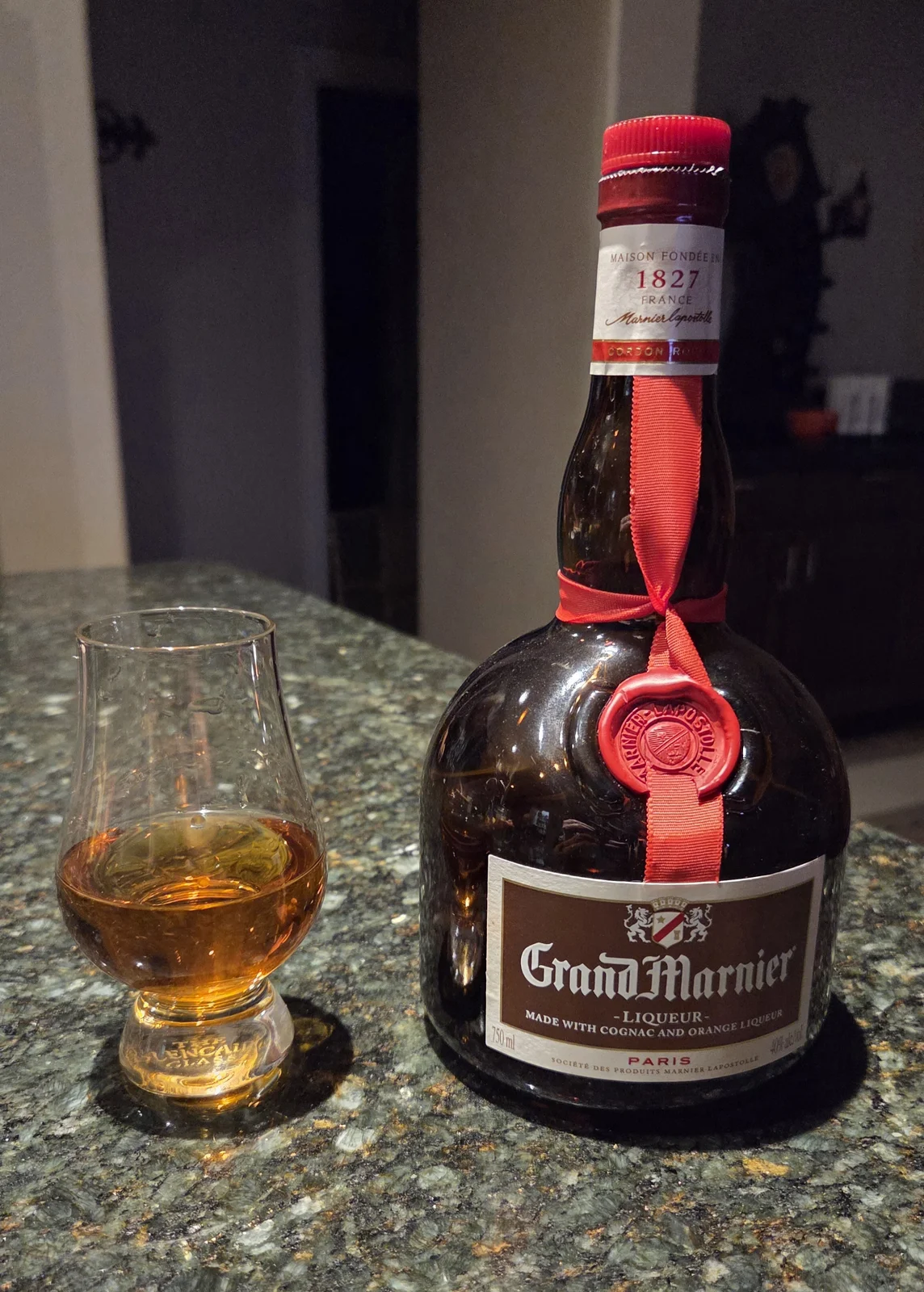 Nothin wrong with that!Not exactly Bourbon, I guess this Gran Marnier is more of a Conac/Citrus Liqueur. I had a good steak and shrimp tonight, so I like to have an after dinner drink sometimes. It's an orange citrus and sweet flavor with a tiny bit of bite.