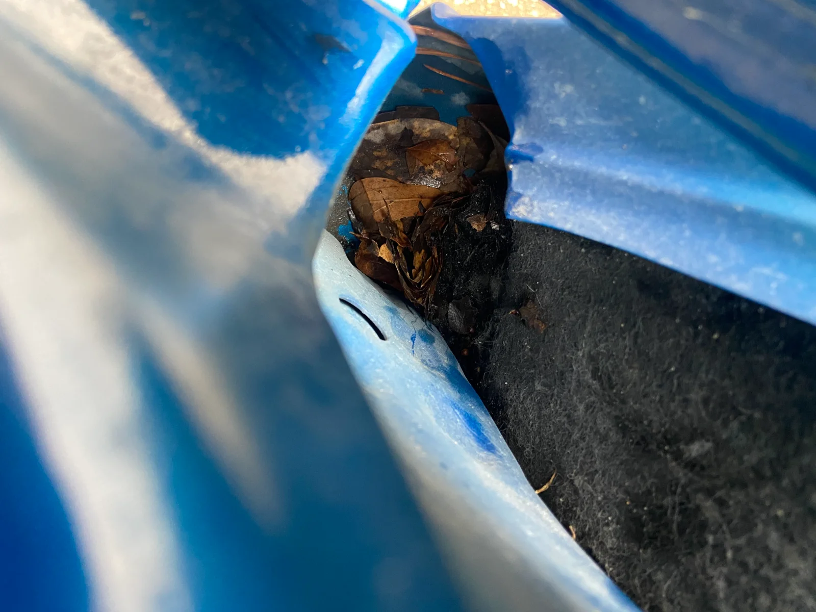Today while searching everywhere, I noticed that the door-jam between the door and the front finder has this felt/sound deadener that is completely soaked and has quite a bit of wet leaves collected. Is this normal? Seems like a great place for rust to become an issue in the future if this felt stays damp.