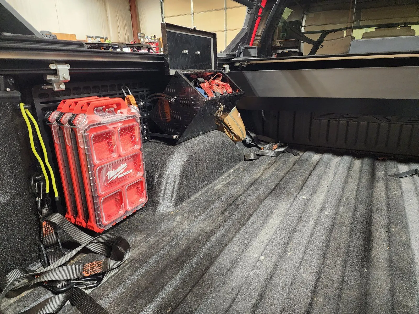 What do you guys use in the box of your truck to carry EDC gear? I carry ratchet straps, some basic hand tools and supplies, and my air compressor . In the winter my tow ropes, snatch blocks and on long trips I throw my winch back there. I have my NCCO under the rear seat. I used to have a swing case in my old truck that housed most of it, but now I have everything in canvas bags just sitting back there since a swing case wont work because of the handle with the multi pro gate