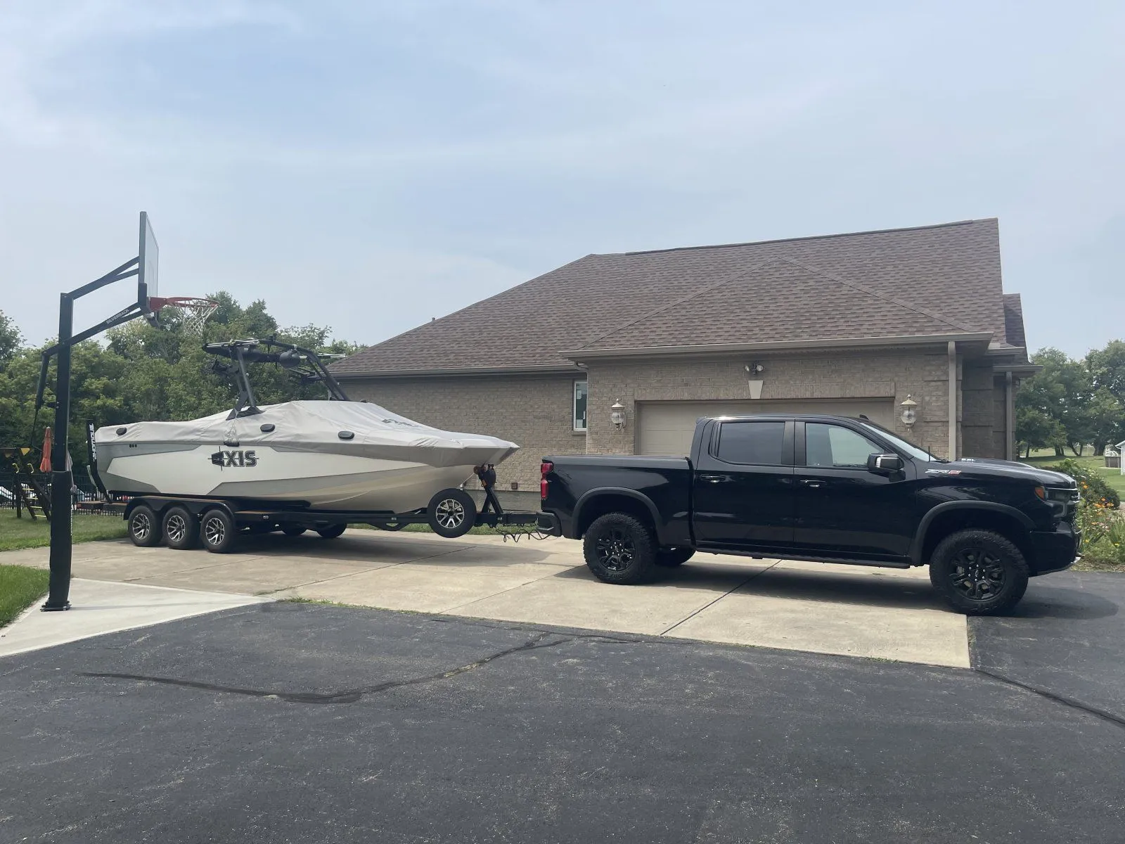 I finally got my boat hooked up to the ZR2 for a short tow to the lake. I don't know the exact weight of my boat and trailer, but guessing 5500 lbs.