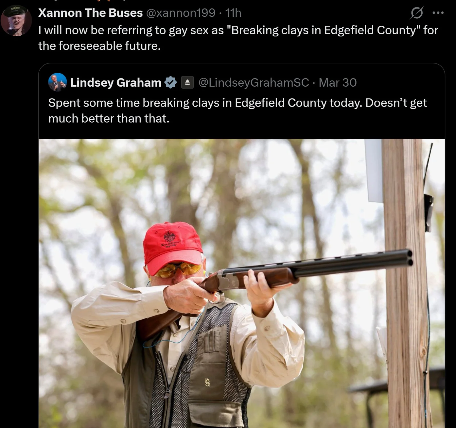 LMFAO, I seen that too. Its so fucking bizarre that Lady Lindsey shit all over Trump during his first term and now he's Trump's best friend. This shit makes no sense and it's right out in the open and people simply have had enough.Thought you might get a laugh from this.