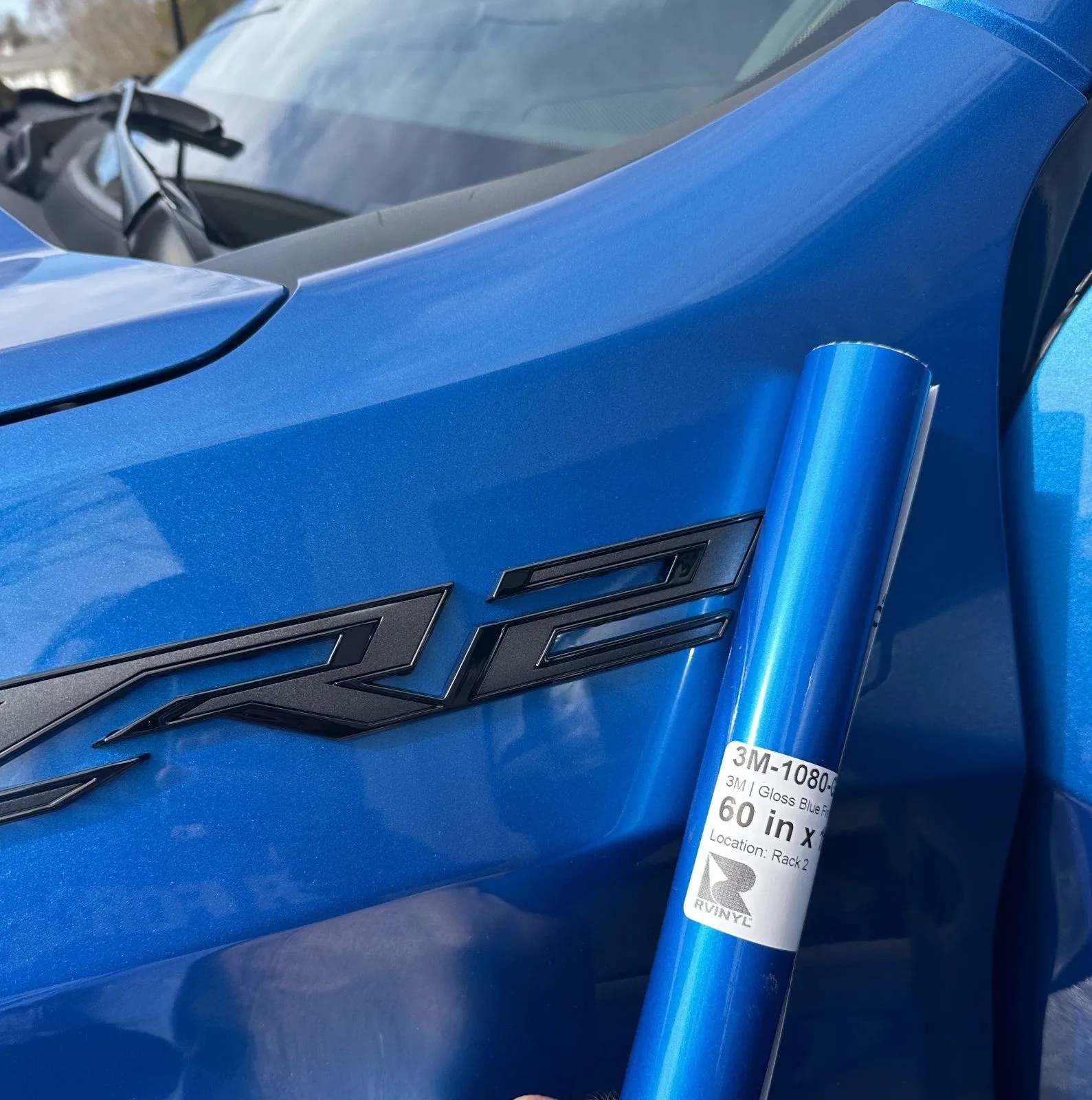 But that got me thinking about how a blue 2 would be pretty cool, so I set off to find a matching vinyl wrap to see if I can't figure out a way to color the 2's on my fender side OEM emblems. I lucked out because on my first try I think I got a pretty dang good match from Rvinyl on Amazon called Gloss Fire Blue.