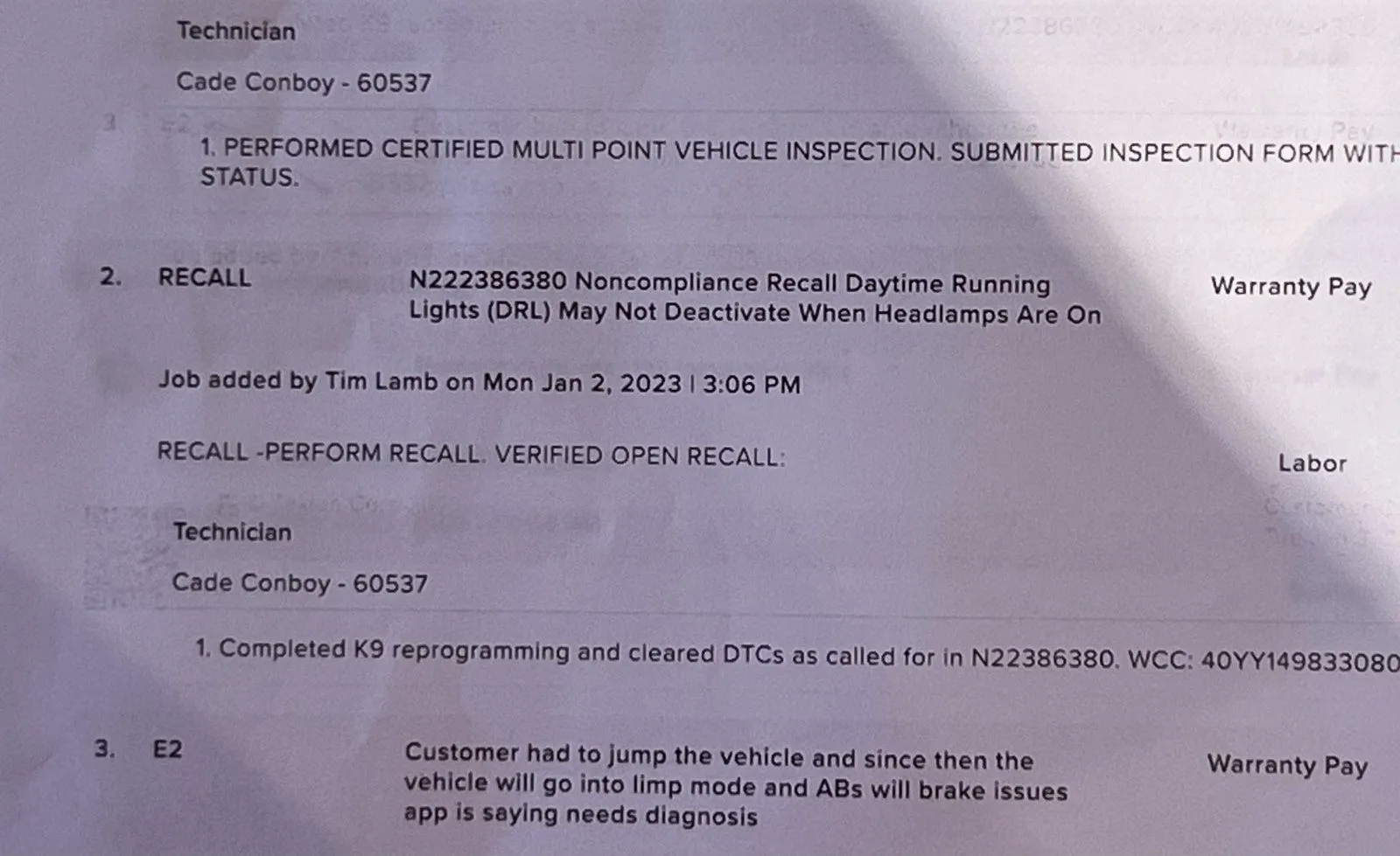 Are you sure it's not a TSB versus a recall? Do you have a reference number for this TSB? Should be on the service order. Thanks!So there’s a recall because the running lights come on on there own and they said that’s what prob killed the battery I suggest everyone go in before it happen to them