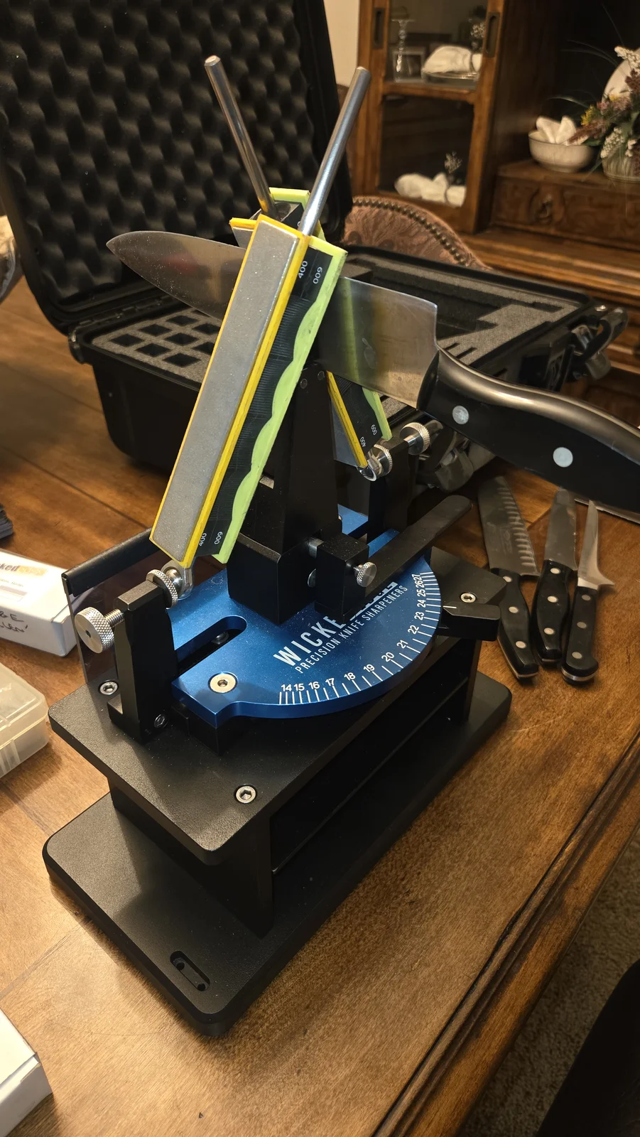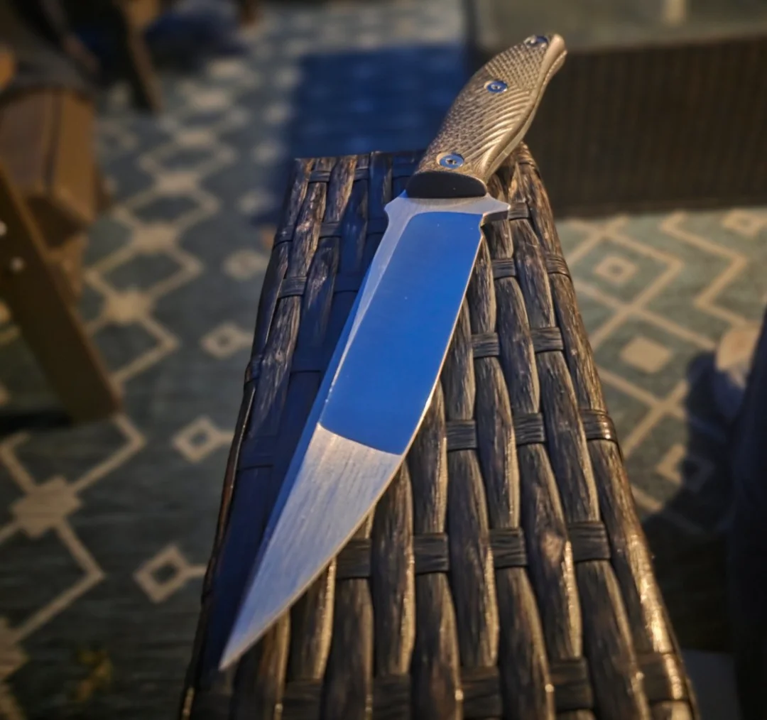 My custom carry piece. Cocobolo scales, Japanese tanto style polished ATS-34 stainless. 1/4” thick full tang setup. Multi-position kydex sheath. This knife is almost 25 years old now. Made by a guy in Georgia that is no longer making blades