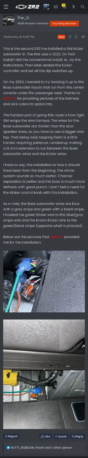 Next up, I purchased a Kicker powered sub kit 51PTRTP12 (non GM variant) and Kicker KeyLOC that are ready to be installed. I installed the GM Kicker sub in my 2 previous trucks but am unsure if I should splice into the front speakers for this new setup…hoping I can find some information on this site about this.