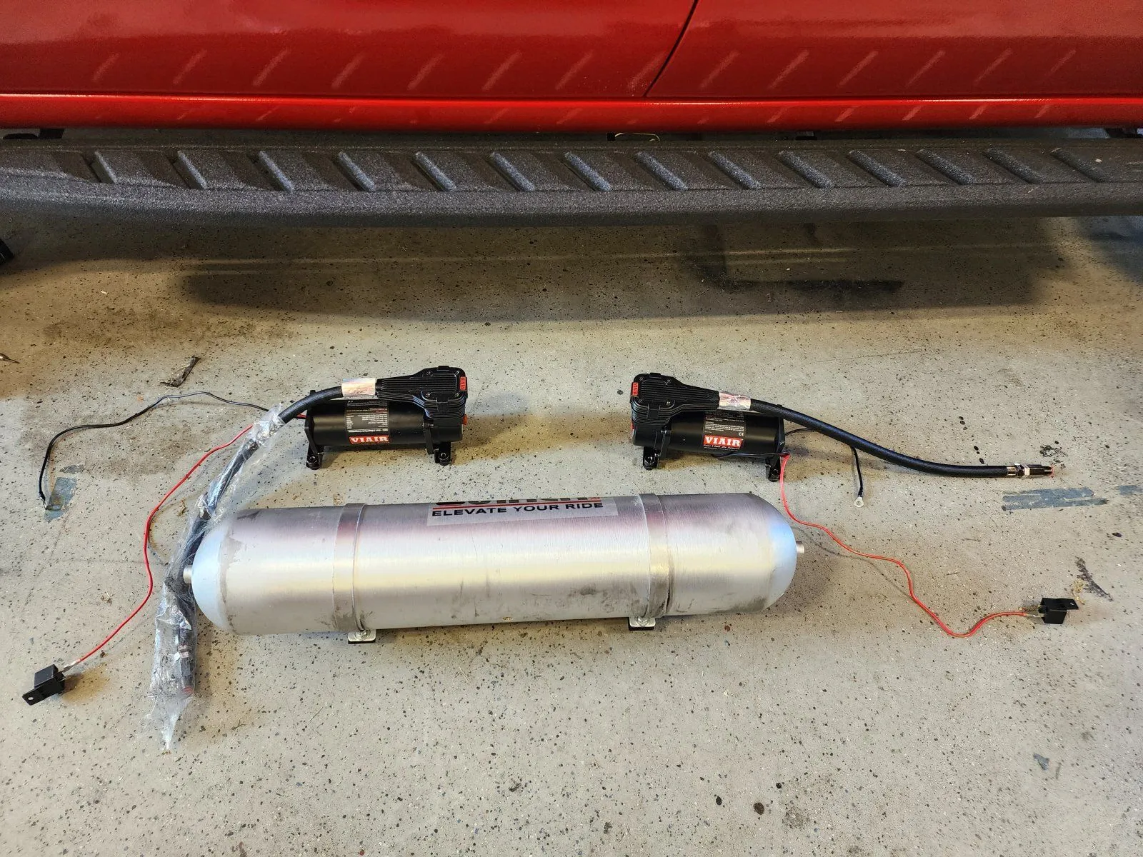 I put on board air and Airlifter airbags on my ZR2. I had air on my Duramax and used it pretty often, so I wanted it on my ZR2. Wasn't sure if it would fit on the ZR2, but found some tanks on Amazon that fit great between the cab body and frame. Mounted dual compressors on the inside of the frame rail on the passenger side.
