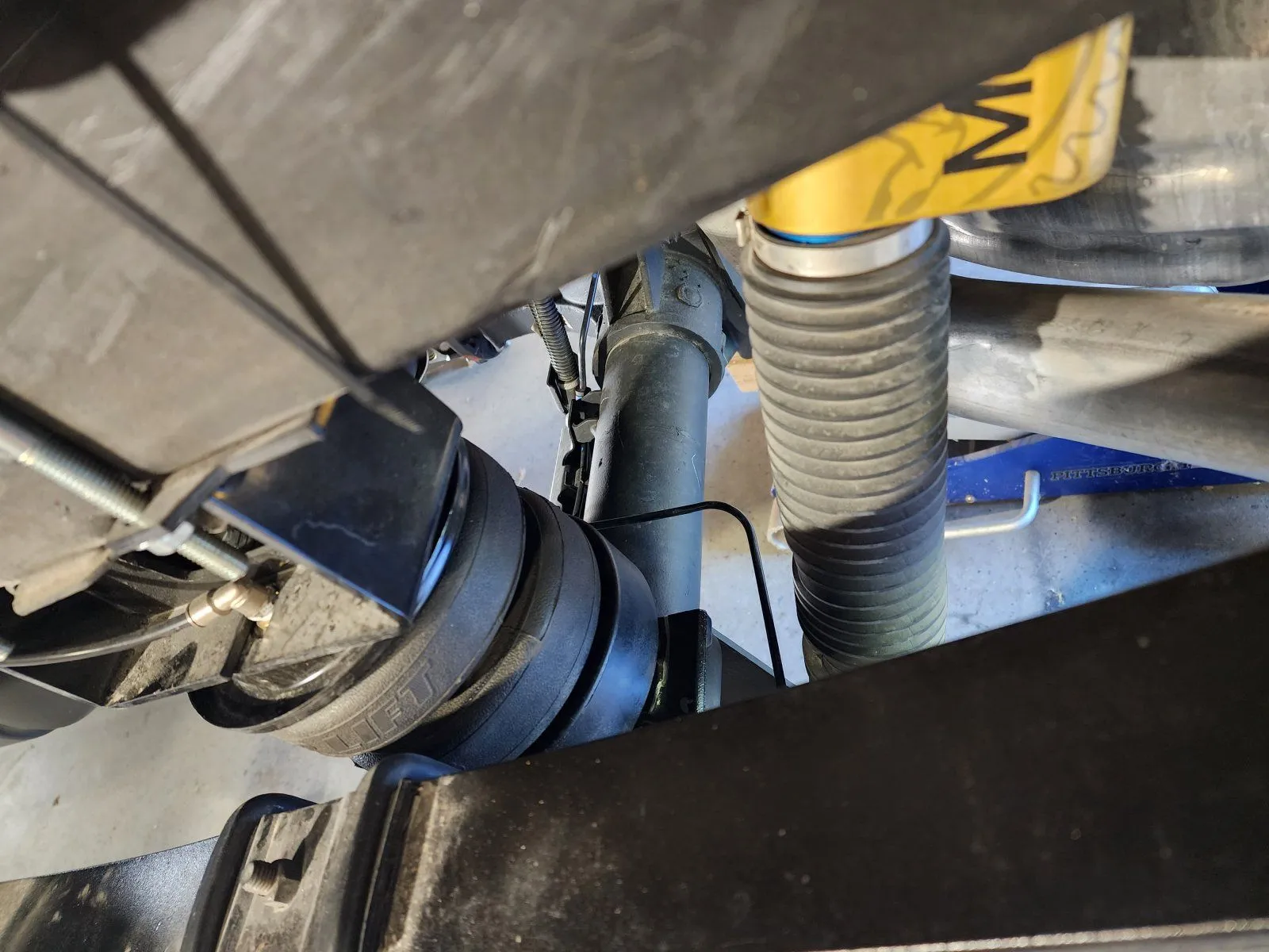I ended up adding air bags because my tractor squatted my truck to much. Originally wasn't planning on putting bags on this truck. I put daystar cradles on the bottom so the bags wouldn't limit the suspension travel.
