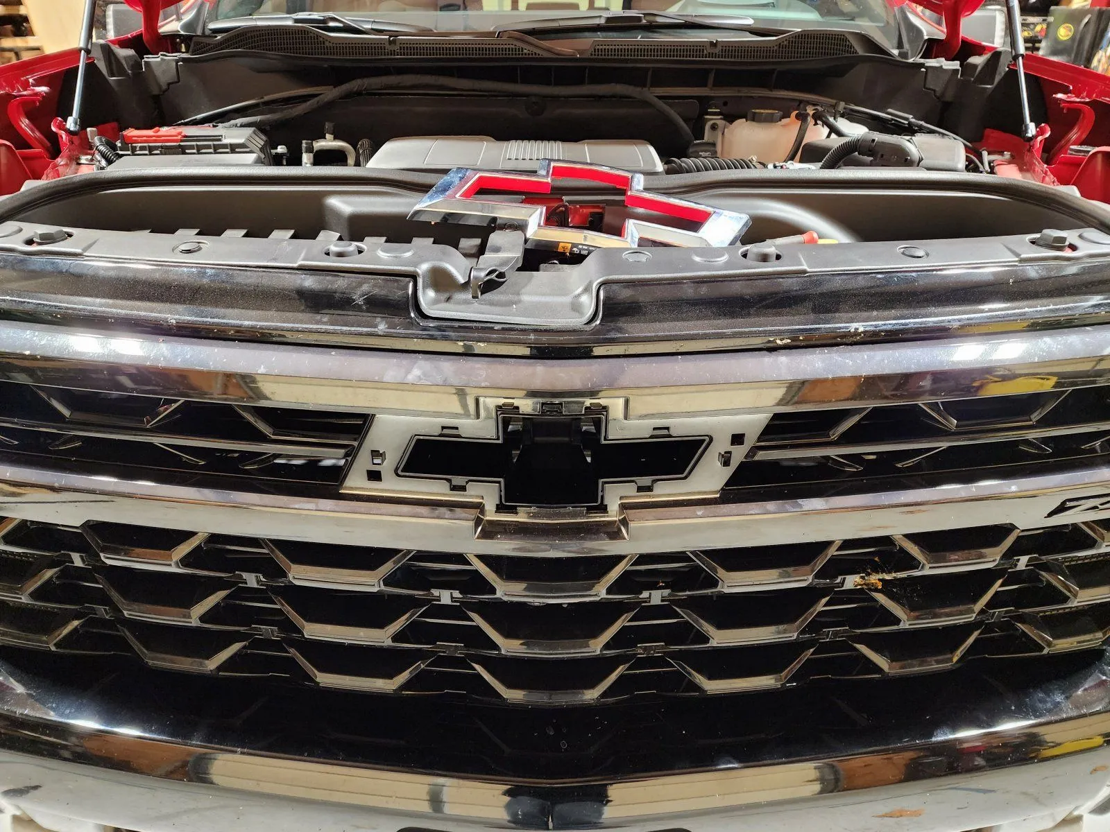Have a Sand Dune truck and trying to get all the chrome off. Put on all black badging. Only thing left is the pass thru bowtie on the grill. I feel like I could pry off the plastic chrome and wrap it, but I'm not sure if that's how it is secured. I can't find a replacement if I break it not knowing how it's stuck on there. After messing with it I feel like it is clipped on there? Anyone attempt this yet or know how GM has it secured on there?