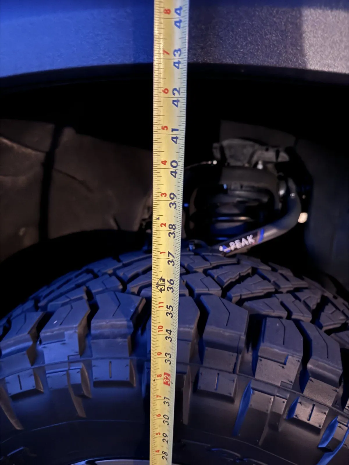 With the Peak kit, some trimming, and spacing out the front bumper about 5/8” I am able to run 285/75 R18 (35x11.25) Nitto Ridge Grapplers on the oem wheels with 2” wheel spacers without rubbing.