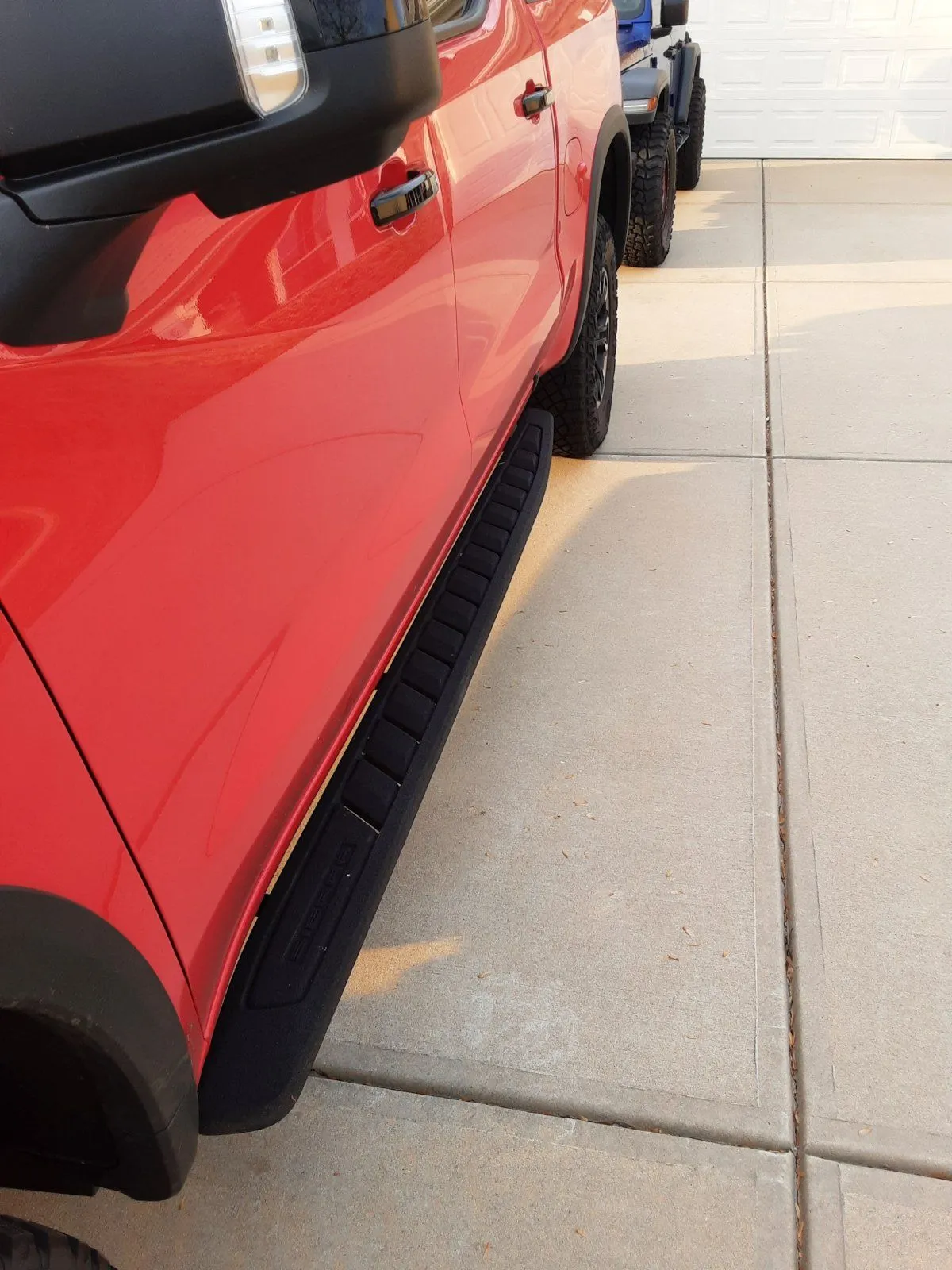 JFC these say Sierra on them!Just installed using M8-1.25 x 30mm bolts. My only complaint is to use the steps when wearing shorts as you exit the truck. The person I bought these from warned me about it as that was his reason for selling them.