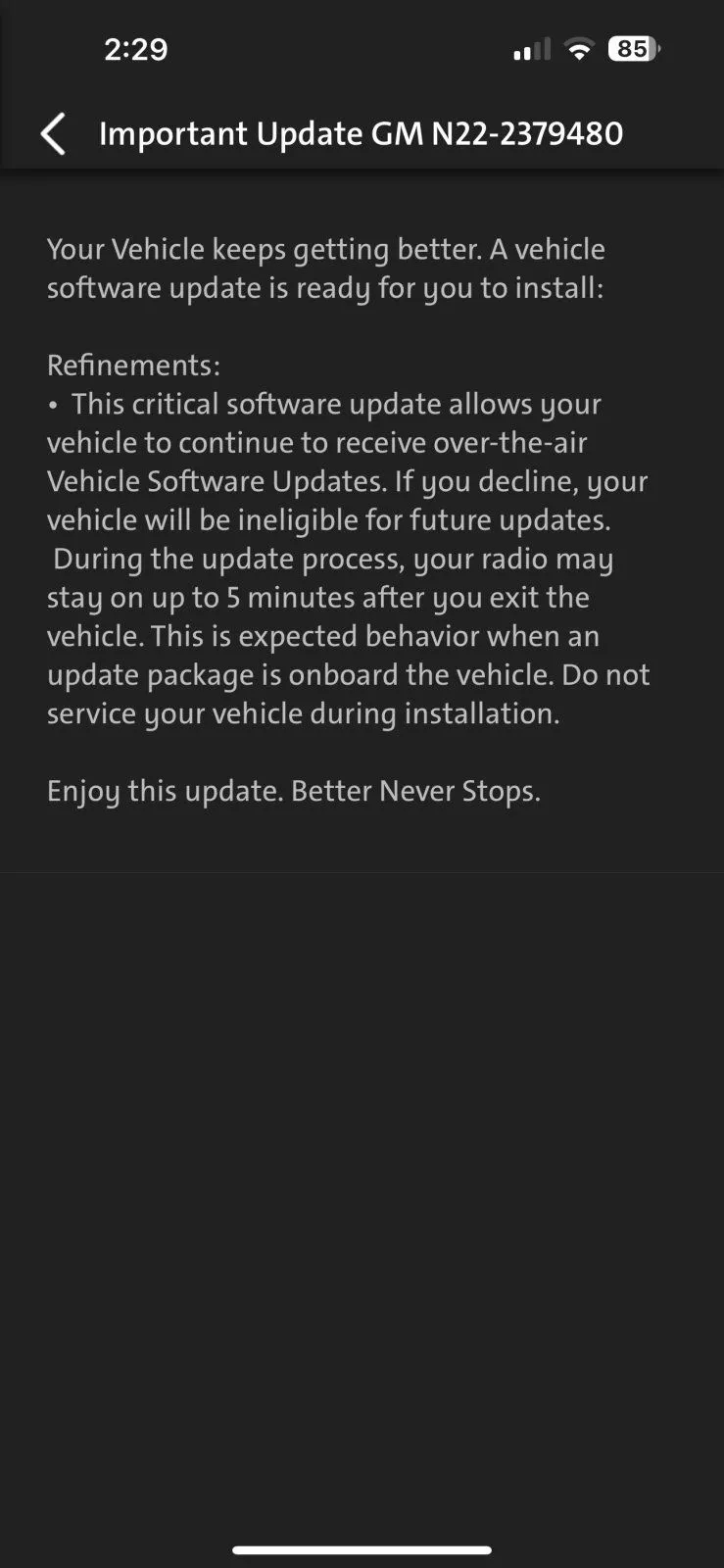 I just got back from the dealer to do my first oil change and they informed me that two updates just became available for the truck...one of them being the Android OS for the infotainment and the other the USB hub. Unfortunately, it did NOT fix the radio muting issue, but they did experience it before and after and stated they would alert GM. I am now running Android 10 - October 22 versus May 22. He had no idea what the changes were, but my truck is now fully up to date software wise. He also stated GM is having issues with the OTA and that most all trucks need to visit a dealer for the most recent updates. This is why my truck was saying it was up to date when it was not.