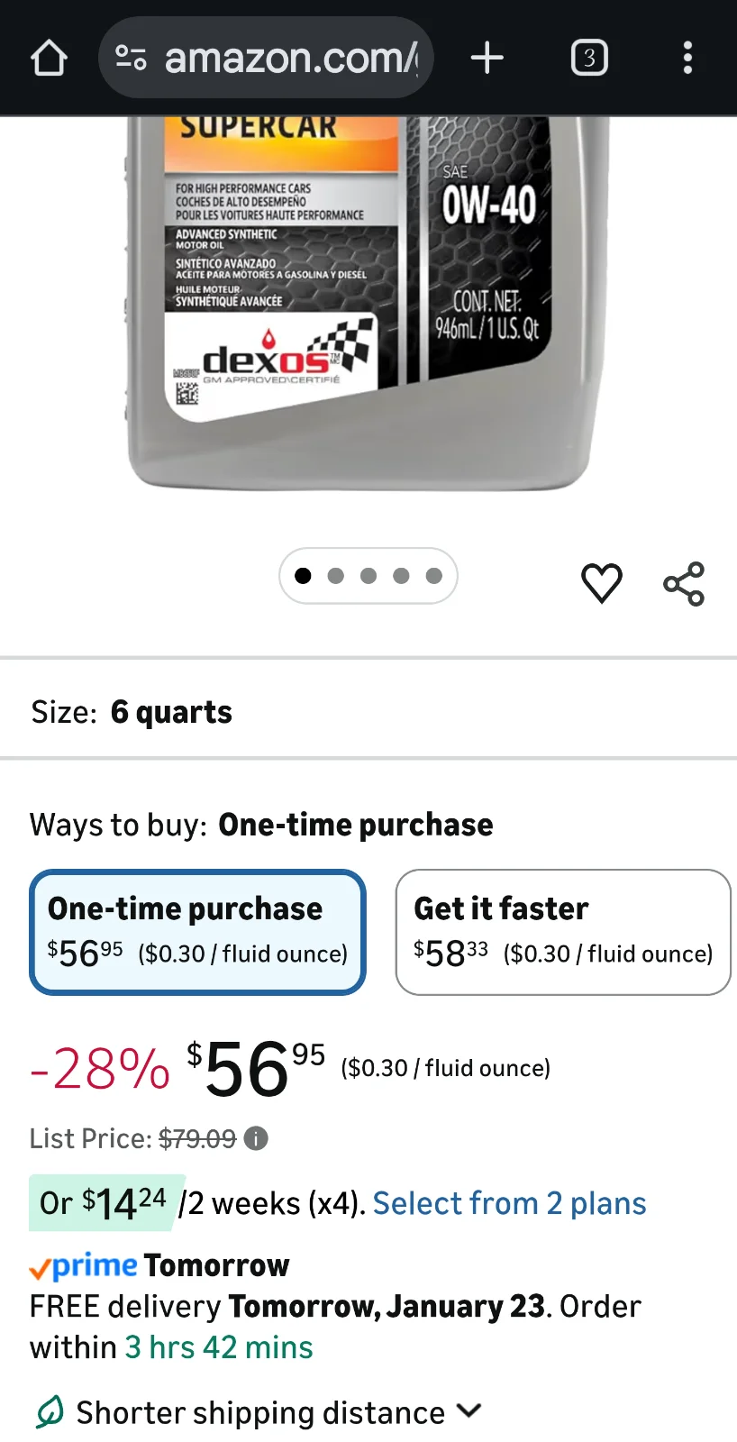I had a close friend get stuck in El Paso Texas. He called me up and asked for a ride so I drove 13 hours to get there and slept for about 3 hours and then turn around and drove another 15 hours back (little slower and more stops on the way back). Did an oil change before leaving Las Vegas and I'm about to do another one in the next week. Changed to Mobil 1 0w40 super car. It was actually a little cheaper than the Pennzoil Platinum. It's 11.99 a quart at AutoZone So I ordered the six pack off of Amazon and got it for less than $10 a quart.