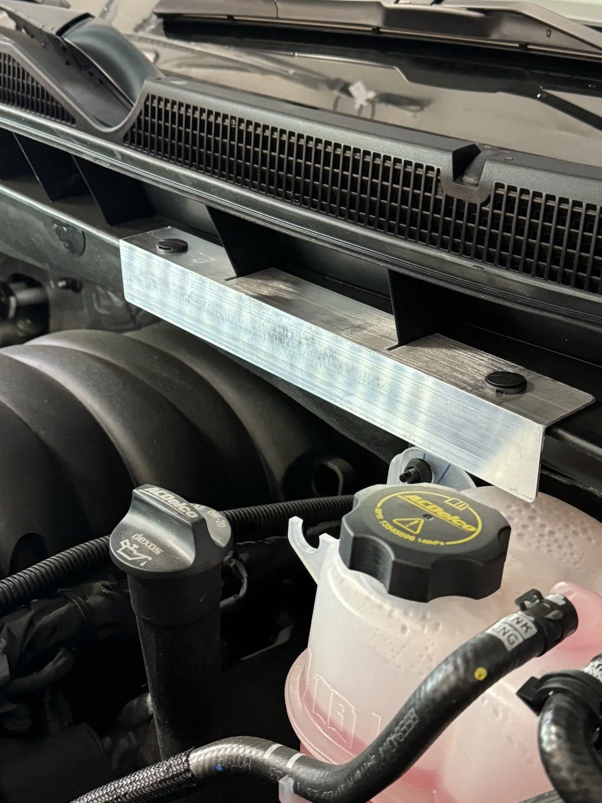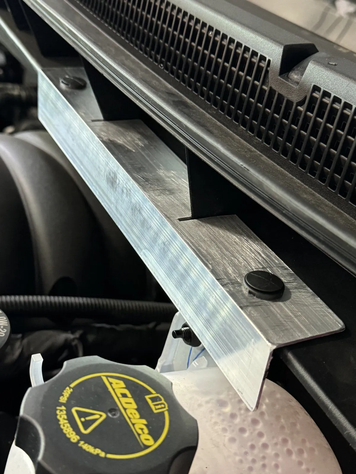 Why? The J&L can is an OEM design and easily mounts to existing hardware. The J&L is top notch and super high quality.Fab’d up and installed an aluminum bracket for future oil catch can install. Haven’t decided which catch can yet but it will get mounted here. Just trying it out until then. Will paint it and mount with proper fasteners when I install the catch can.