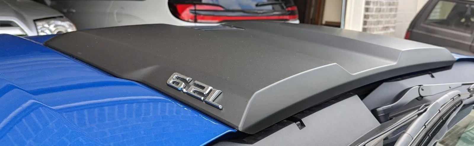 Got the hood bulge wrapped in a matte/satin black with gold accent and black 6.2L badges!!