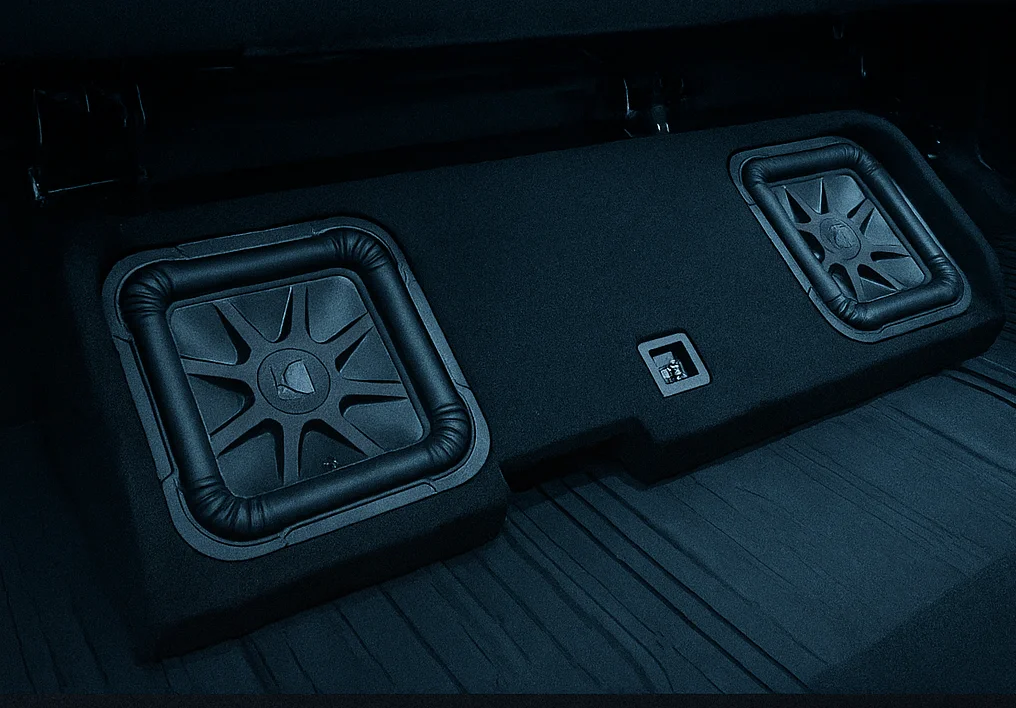 Yeah those Kicker Solo Baric’s do hit hard. I’ve got a pair out back in my pool area and they sound incredible. You do need a strong sub amp to run them. Can you attach a pic with more light showing them installed in final resting position?Dropped in the Kicker 51KGMDL7T122 L7T Dual 12” Down-Firing Subwoofer Enclosure, and let me tell you, this thing SLAPS.